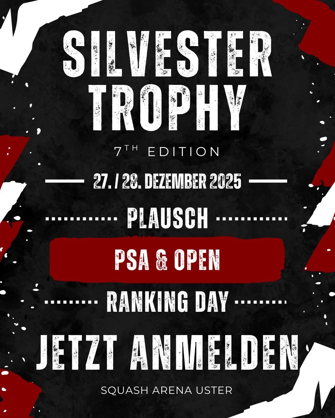 Vom Samstag, 27., bis Sonntag, 28. Dezember 2025 organisiert Rino Mathis in der Squash Arena Uster den 7. Silvester Trophy Event. Das Hauptevent ist ein Closed Satellite und offen für alle Spieler:innen, die national und international Punkte sammeln möchten. Zusätzlich gibt es ein Tagesturnier am Sonntag für Fun & Ranking sowie für alle, die einfach spielen möchten.