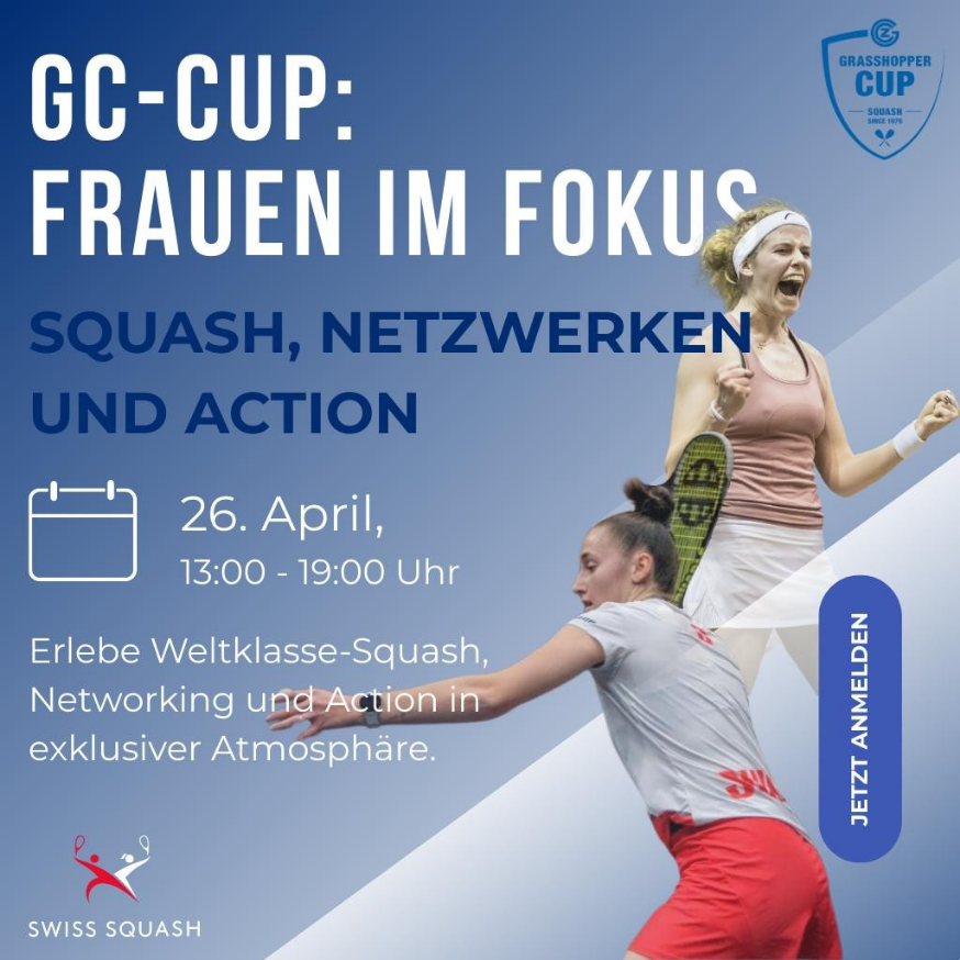 Wir freuen uns, euch am Samstag, den 26. April, von 13:00 bis 19:00 Uhr zum GC-Cup im Hauptbahnhof Zürich einzuladen. Erlebt ein Event der Extraklasse: Netzwerken mit den besten Schweizer und internationalen Squash-Spielerinnen, sowie spannende Matches in einer einmaligen Kulisse.