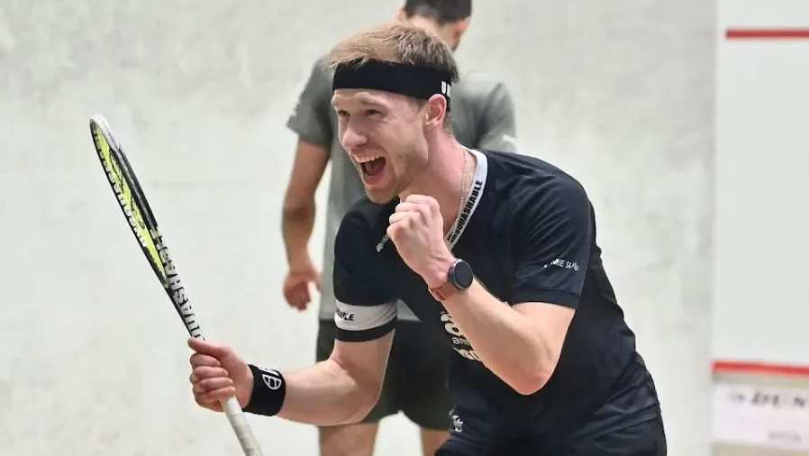 Dort wartete kein Geringerer als die Nummer 1 des Turniers, Declan James (WR 26) – ebenfalls aus England. Beim letzten Aufeinandertreffen der beiden, im September am PSA Budapest Open 2024, hatte Yannick noch knapp in fünf Sätzen verloren. Dieses Mal aber zeigte er sich mental stark und taktisch hervorragend eingestellt: Nach Gewinn des ersten Satzes unterlag er in den nächsten beiden Sätzen, kam jedoch eindrucksvoll zurück und entschied den vierten und fünften Satz – und damit das Finale des Czech Open 2025 – für sich!